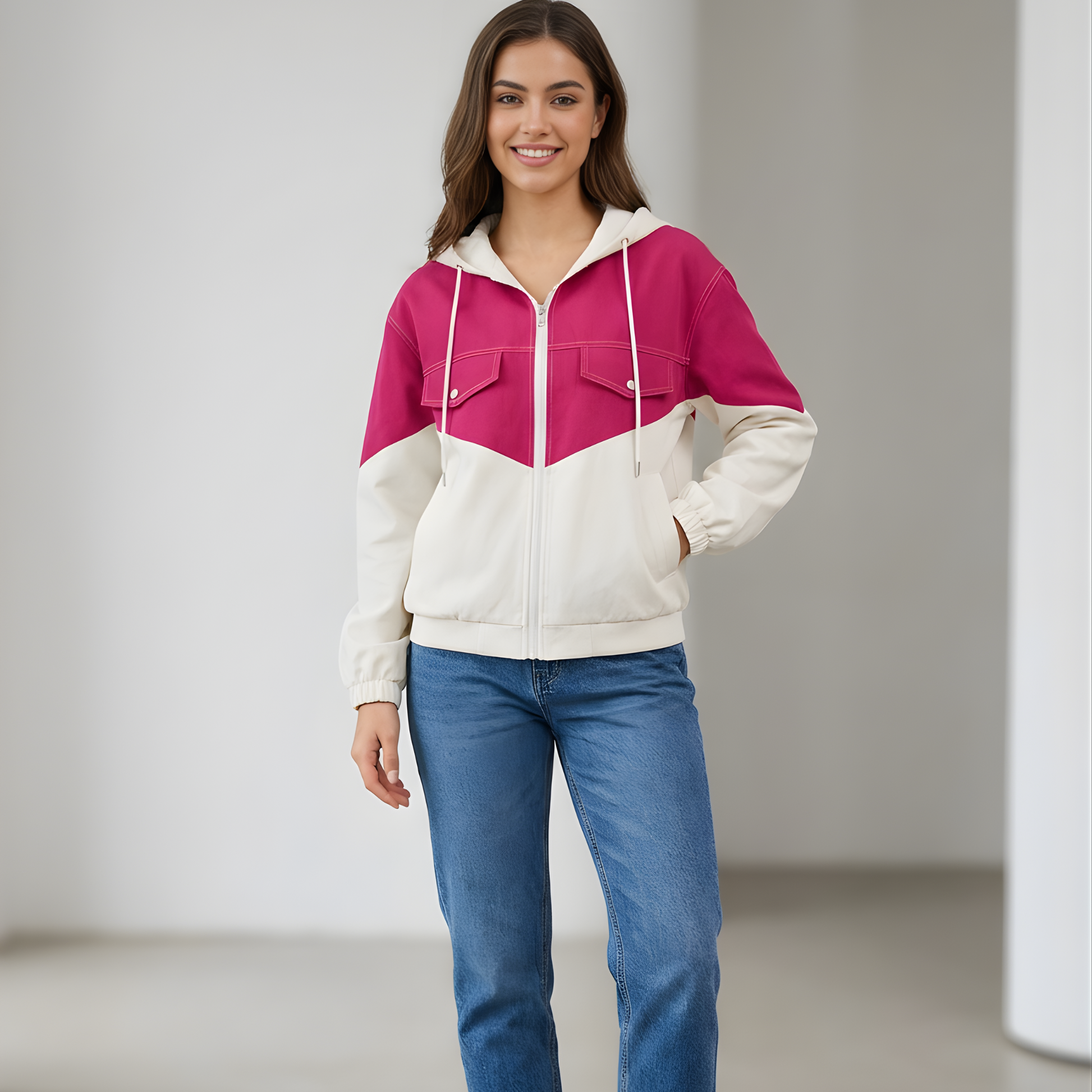 Made with 10 oz durable denim and 320 GSM blazer cotton, it offers the perfect balance of structure and softness. The zip-up front and hoodie design make it ideal for casual outings, university wear, and light winter days.